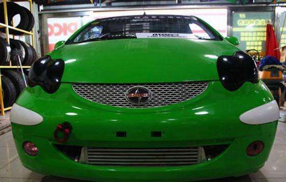 小伙特意选了一辆女生喜欢的纯绿色车,对车的大灯和轮毂都按照跑车赛车的标准进行了更换,以让车更有百万豪车的感觉