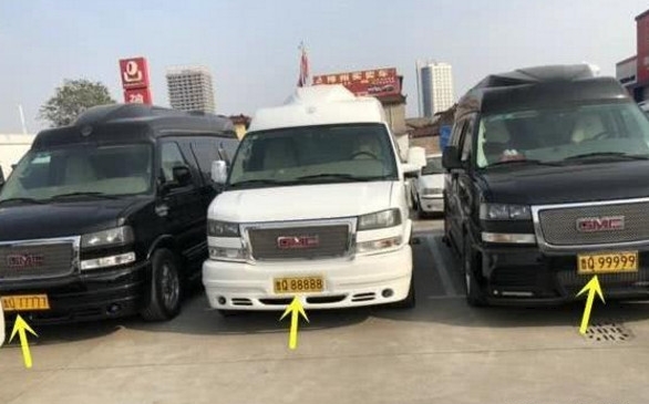 1.放眼望去,3辆GMC豪华房车,挂的车牌也格外亮眼,从左到右分别是77777、88888、99999。除77777是鲁U(青岛)车牌外,后两块都是鲁Q(临沂)车牌
