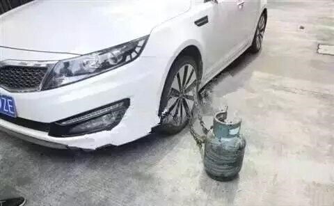 现在车越来越多,本身车位不够用也情有可原,但很多人喜欢乱停车,比如占用别人的车位,或者阻挡了别人的出行,就会发生严重的后果。像这辆起亚乱停车,被人绑在煤气罐上动弹不得了。