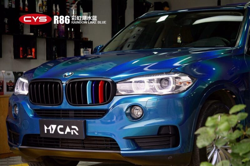 宝马X5帅爆了!只因为贴了CYS彩虹湖水蓝改色膜