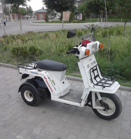上世纪60、70年代,本田生产了很多经典的50cc摩托车,像是幼兽、CB最小的排量CB50S、嘉陵70的原型CD50等等。当然,其中也少不了图中的这款车,最为另类的小排量车型,本田GYRO不倒翁。