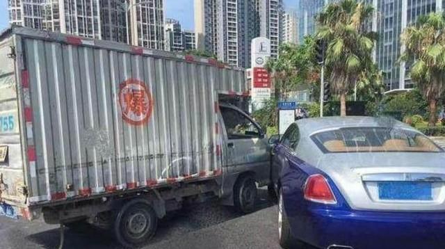 正当五菱车主吓得直冒汗的时候,劳斯莱斯车主下车看完情况也捏了一把汗。原来,五菱之光车上写了一个“爆”字。五菱车上载了一车的易爆物品,劳斯莱斯车主感到十分庆幸,幸好只是把车撞了一下,而没有发生爆炸事故。不然后果不堪设想。