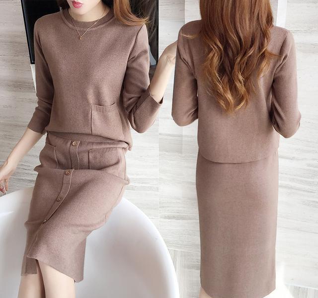 2017春季女装新款中长款针织打底连衣裙毛衣两件套装修身长裙,都市潮流 时尚气质名媛。