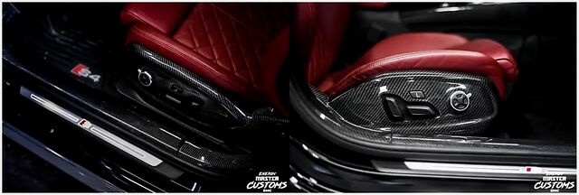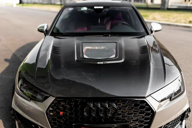 碳纤维零件上身后,原本还有点“行政”范儿的S4,一下就凶狠起来了,虽然还是穿着一身西装,但包裹着的“肌肉线条”更加明显。 机盖透明小窗 里的那台V6发动机若隐若现。