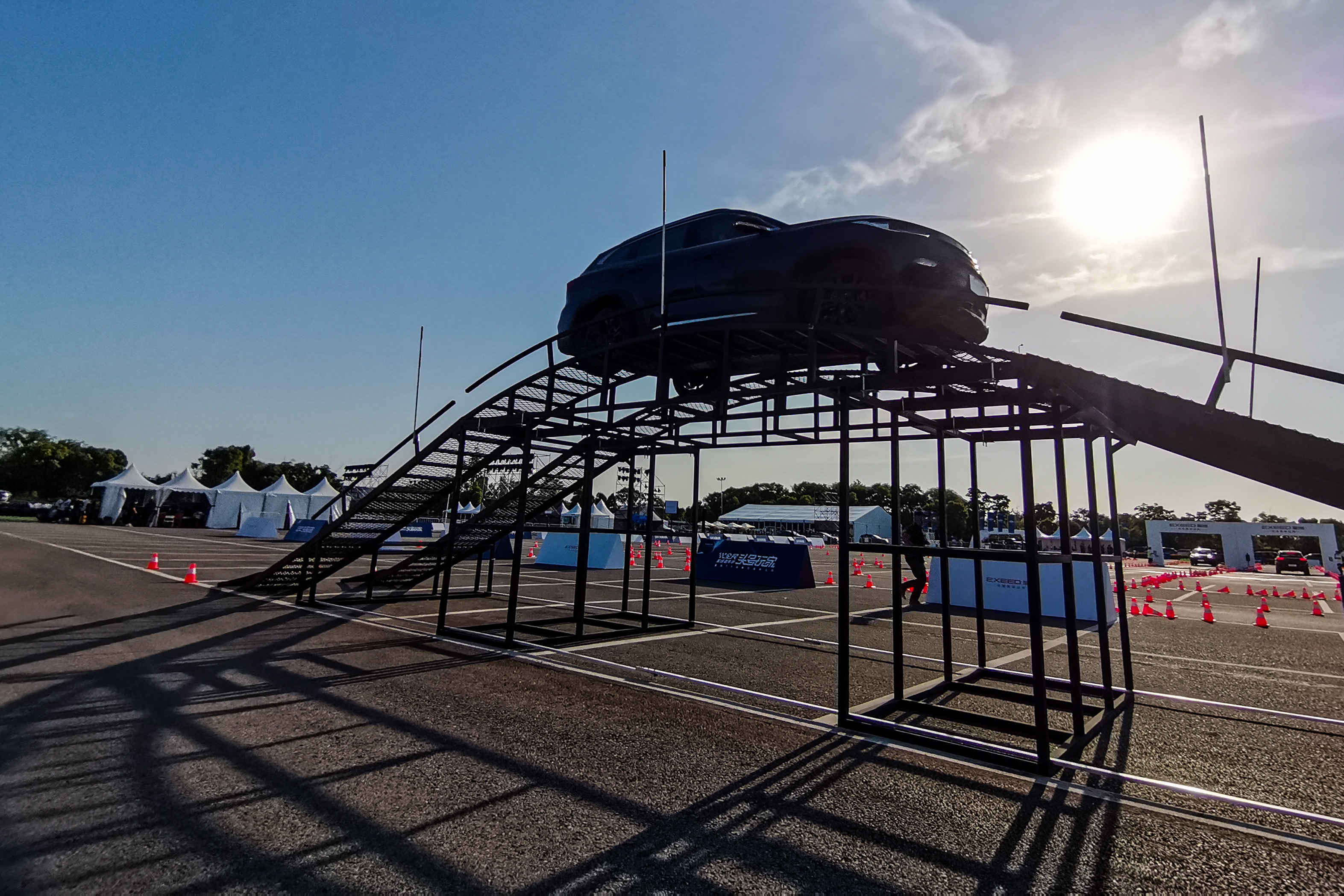 随后还体验了交叉轴、滑轮组以及攀爬拱桥等项目,整体难度不算高,然而对于一台家用为主的城市SUV来讲,应付日常用途绰绰有余。