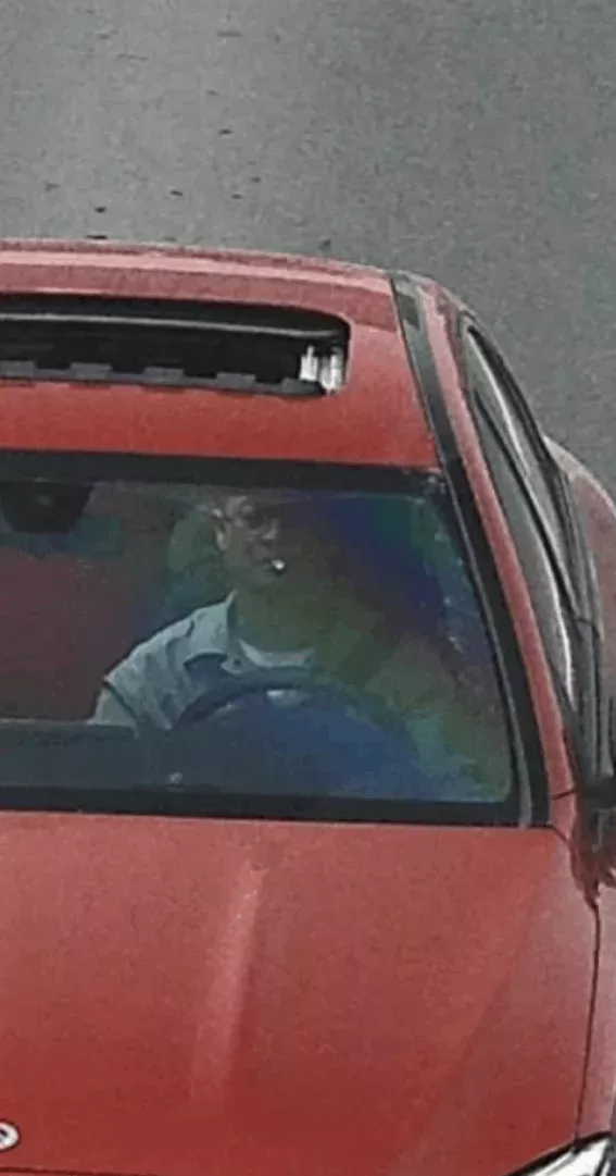 根据照片来看,该名男子驾驶着一辆红色轿车行驶,鸟屎的位置刚好落在了嘴巴附近,犹如嘴里含着一根香烟在抽烟,从车主的眼神表情以及鸟屎出现的位置,非常契合抽烟的状态,所以违章摄像头给出了“违章驾车”的抓拍。