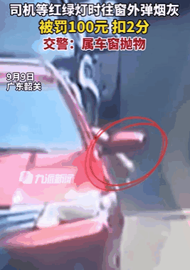 近日,广东韶关有一辆红色的小轿车,在等红绿灯时,因为司机在车内抽烟,并且缓缓打开车窗把手往车窗外一搭,多次将手里的烟灰弹了出去。而这位司机也受到了处罚100元,记2分的处罚。