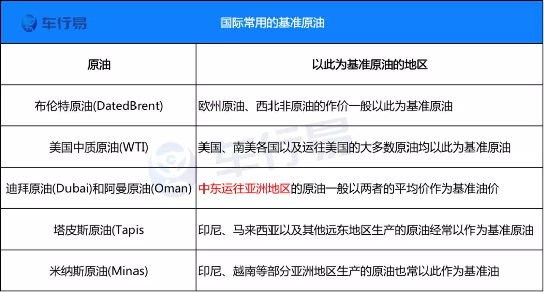 目前最为常用的基准原油有以下几种:WTI、布伦特、迪拜与阿曼、塔皮斯、米纳斯。而我国原油成本的基准,主要挂靠布伦特原油和阿曼原油。