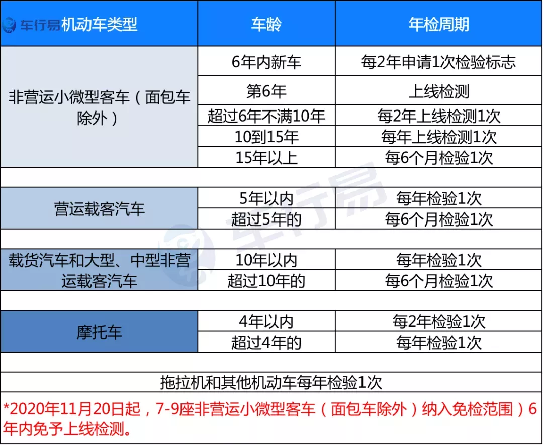 虽然年检合格标不用贴了,但并不是不再使用,只是以电子标志的形式呈现了。机动车的年检还是按照原政策实行:6年内新车,每2年领取一次年检标(领取电子标即可),第6年参加上线检测(具体如下表)。