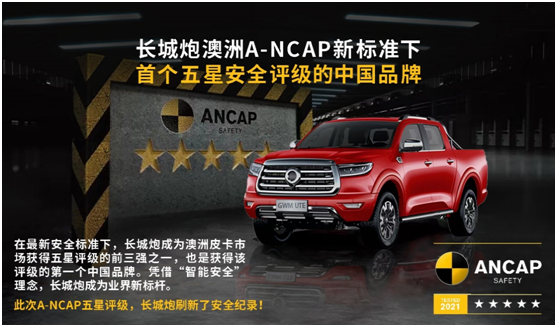 自诞生以来,长城炮深度贯彻全球化战略,已经成为全球皮卡品类的“中国名片”。截至目前,长城炮已在全球四大洲50余国上市,并成为澳洲ANCAP最新标准下首个五星安全评级的中国品牌,在全球舞台树立起中国品牌形象。