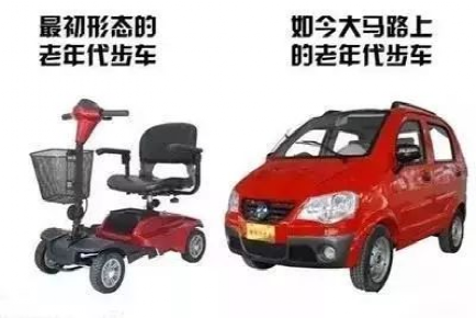 目前行驶在城市路面上的电动三轮、四轮车,最早于2012年前后以“老年代步车”身份走进公众视线,从原先归属于医疗器械类的电动轮椅演变而来,车速基本控制在每小时10公里以下,符合老年人驾驶习惯,速度低、安全性高,只能在一定场地范围内行驶,如小区、厂区等,并不能上路行驶,近年来,经过不断的改装,“老年代步车”的外观已经非常接近于普通的机动车。