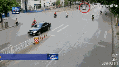 “老年代步车”突然变向,撞上一辆正常行驶的黑色轿车