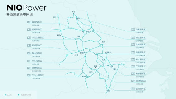 技术上,大概有两种路线:一类是以特斯拉为代表的快充派,加快充电速度,减少等待时间;另一类则是蔚来、吉利等推崇超充+换电的品牌,中间补能的速度更快,以蔚来为例,为了优化用户的长途体验,最近在安徽省内的高速服务区布局了18座换电站。