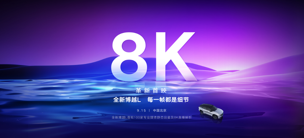 9月15日,吉利基于CMA架构打造的全新A级SUV——“智能SUV革新者”博越L,迎来首轮专业媒体静态评测。同时,在北京、上海等多地开设了8K超高清直播分会场。得益于中国5G通信技术和8k超高清画质的加持,此次超高清静态评测完美展现了吉利博越L的造型美感、做工质感,拥有比肉眼甚至放大镜更细致、更清晰的视觉感官体验。