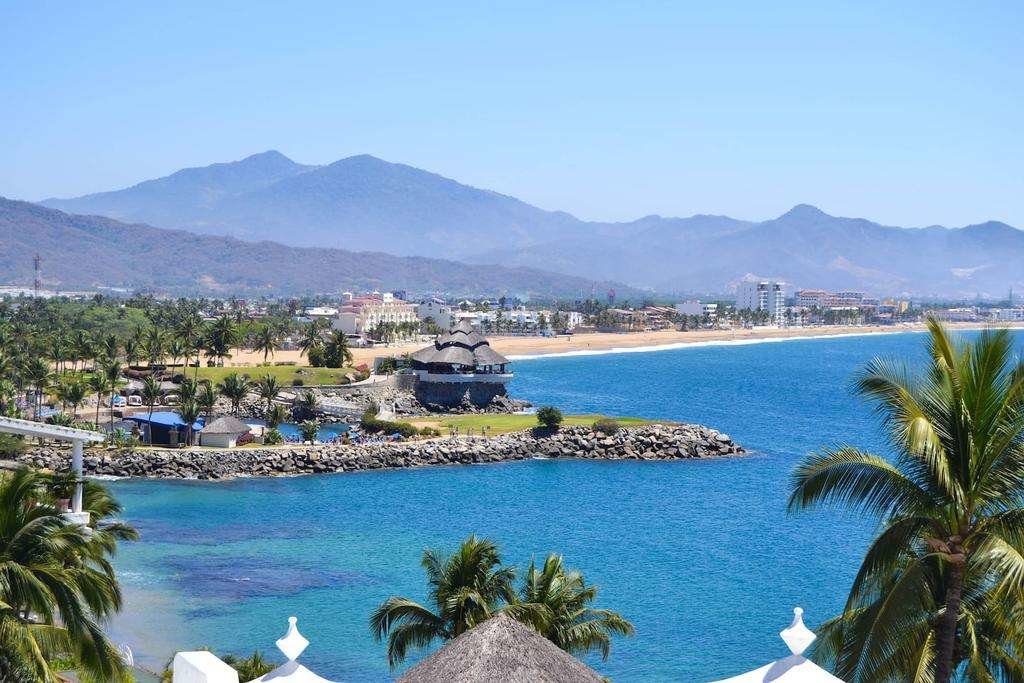 曼萨尼约是墨西哥在太平洋一端的港口,纬度在北纬二十度左右。我们的抵达日期是11月15号,北半球的冬季,对比赤道而言反而感觉气候炎热,陆地满是热带风情,沿岸郁郁葱葱,椰树剑麻作为景观树,有一些四方遮阳亭。这里海水湛蓝,空气清新,海滩上的沙十分细腻柔软,呈白垩色,但是上面有不少枯枝败叶。