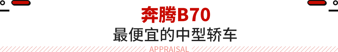 如果觉得以上两款车造型太过于年轻,不妨考虑一下它——奔腾B70,该车定位于中型轿车,售价区间仅为10.59-14.49万元,可以说是目前售价最便宜的中型轿车。且其造型稳重大气,气场也非常强大,给人一种二三十万豪车的感觉。