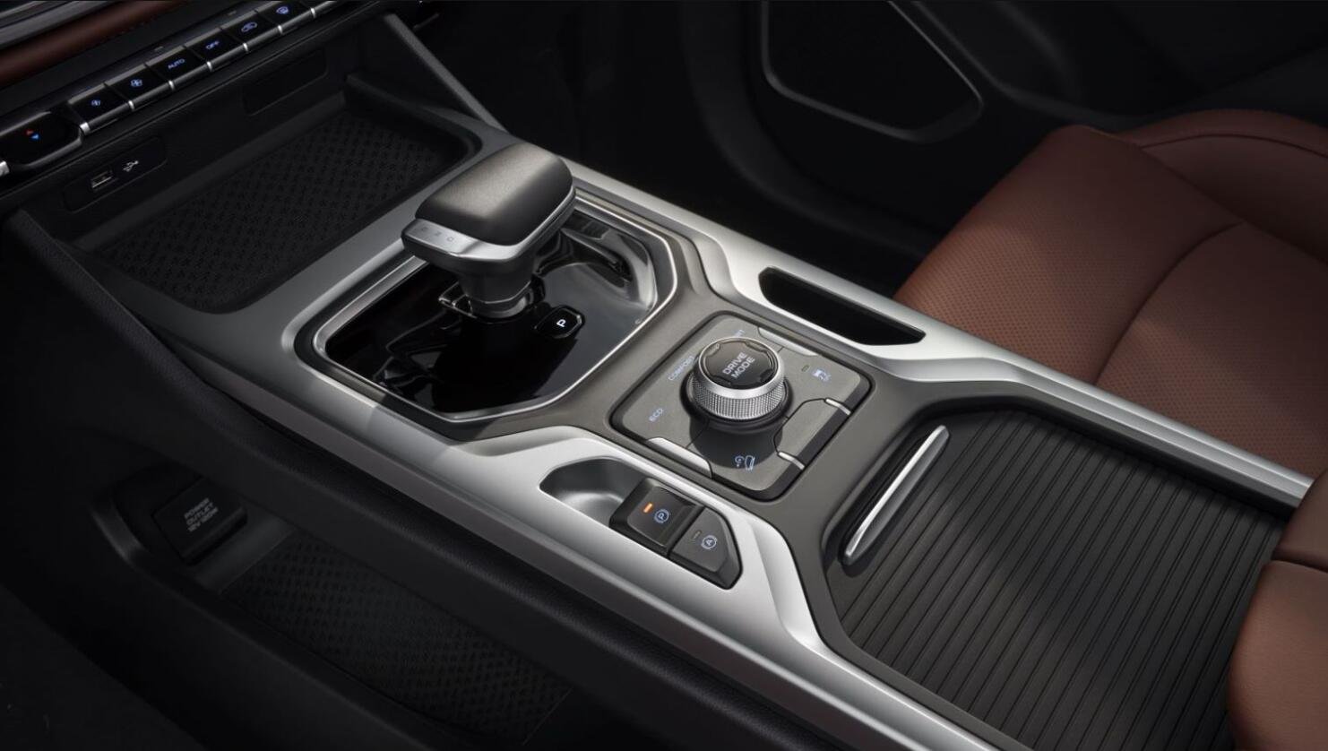 车内跟传统皮卡的样子截然不同。如果单看车内,很少会有人想到这是一款皮卡车型。车内设计风格很“吉利”,跟吉利乘用车的设计高度相似,车内采用悬浮式中控屏,配有车机系统,支持语音功能,而且,车内采用大量软性材质,还进行双拼撞色设计。