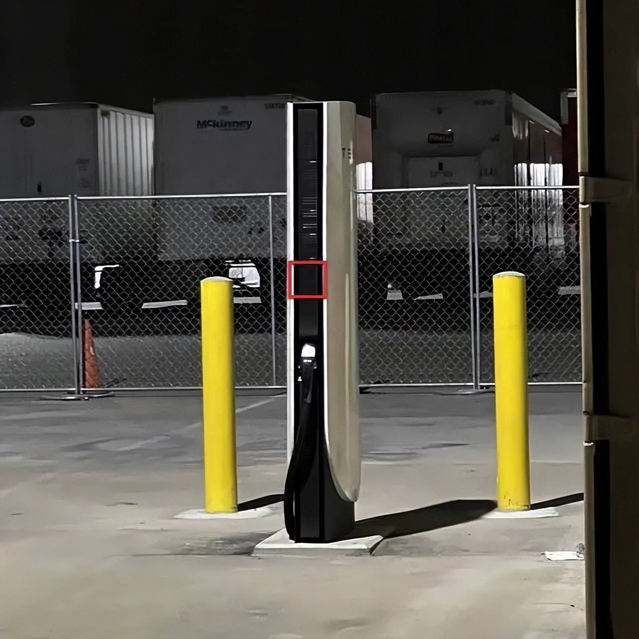 值得一提的是,V3超级充电桩为镂空设计,这一设计在V4上被取代,V3的这种镂空设计是为了散热设计,V4在散热上进行了全新的设计,所以说不再需要镂空这种造型。