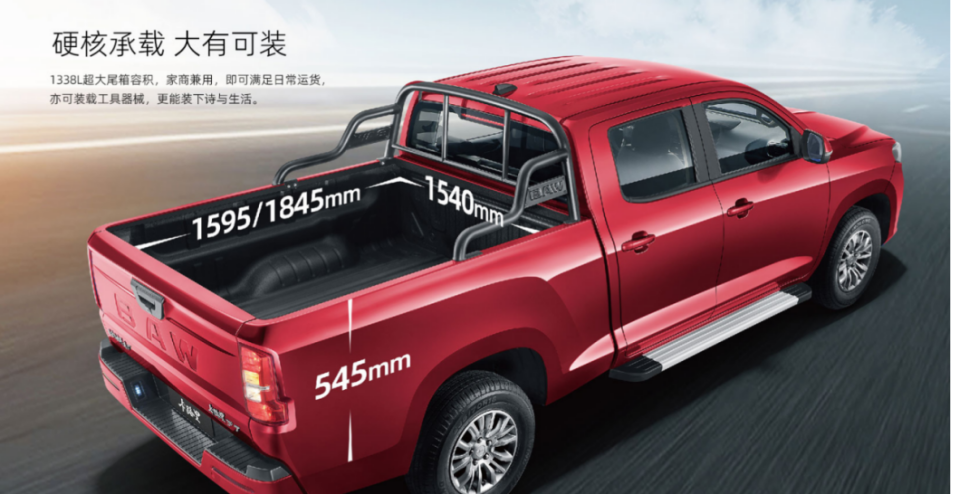 人们之所以称呼皮卡为创富神器,归根结底在于它有着强大的装载能力,卡路里的两个轴距版本对应的货箱尺寸分别是:1595/1845*1540*545mm。平整的货箱具备相当强大的载物能力,最大额定载重分别达到了495/795kg,与一辆微小卡的承载重量相当。