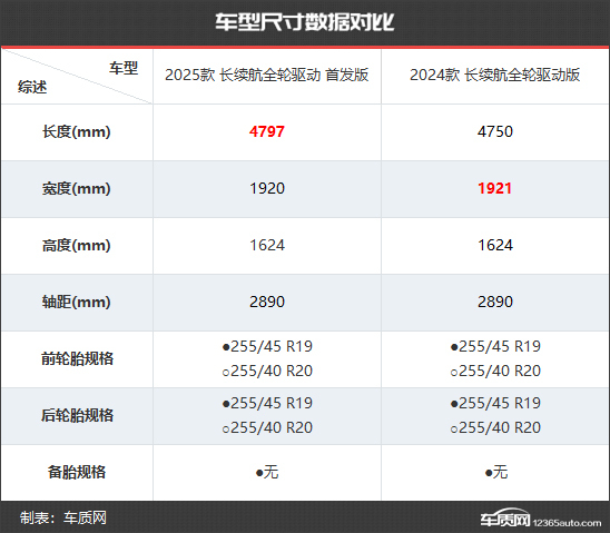 车型尺寸方面,新款车型的长度相比老款车型增加了47mm,令整个侧面看上去更加修长、动感。轮毂方面,新款车型与老款车型保持一致,均配备19英寸熏黑轮毂,与之匹配的轮胎规格也同为255/45 R19。
