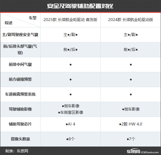 安全配置方面,新款车型依旧配备了丰富的主/动安全配置,可以有效保障车内乘客的行驶安全性。驾驶辅助配置方面,新款车型换装了AI 4辅助驾驶芯片,并且摄像头数量也增加至8个,拥有更好的用车体验。