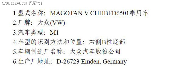 凤凰汽车讯 从工信部环保目录获悉,大众将进口一款车型名称为MAGOTAN V的车型,据猜测,该车便是全新迈腾旅行轿车。