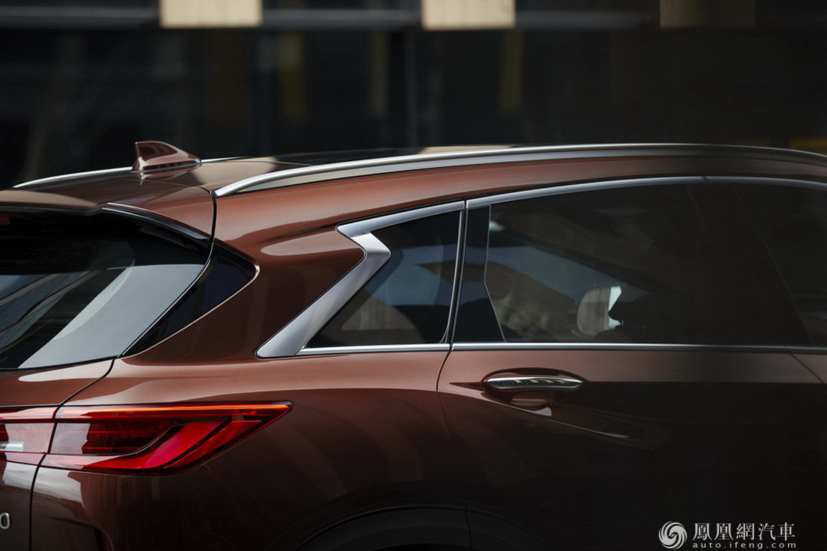 在外观设计上,QX50基本延续了现款车型的设计,山脊式腰线设计采用英菲尼迪独特的125°深冲压工艺制造而成,不仅造就雕塑感立体身形,同时减少空气阻力;海浪纹中网静中取动、柔中带刚,以海浪般的优雅线条勾勒层叠气势。