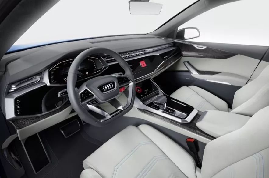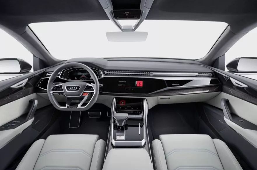 内饰方面,奥迪Q8采用了“虚拟驾驶舱”的设计理念,整车内部的物理按键痕迹甚至比新上市的奥迪A8L还要少。奥迪Q8也将继续延用奥迪新A8L上的多屏幕设计,而不是现款奥迪Q7的独立液晶显示屏设计。