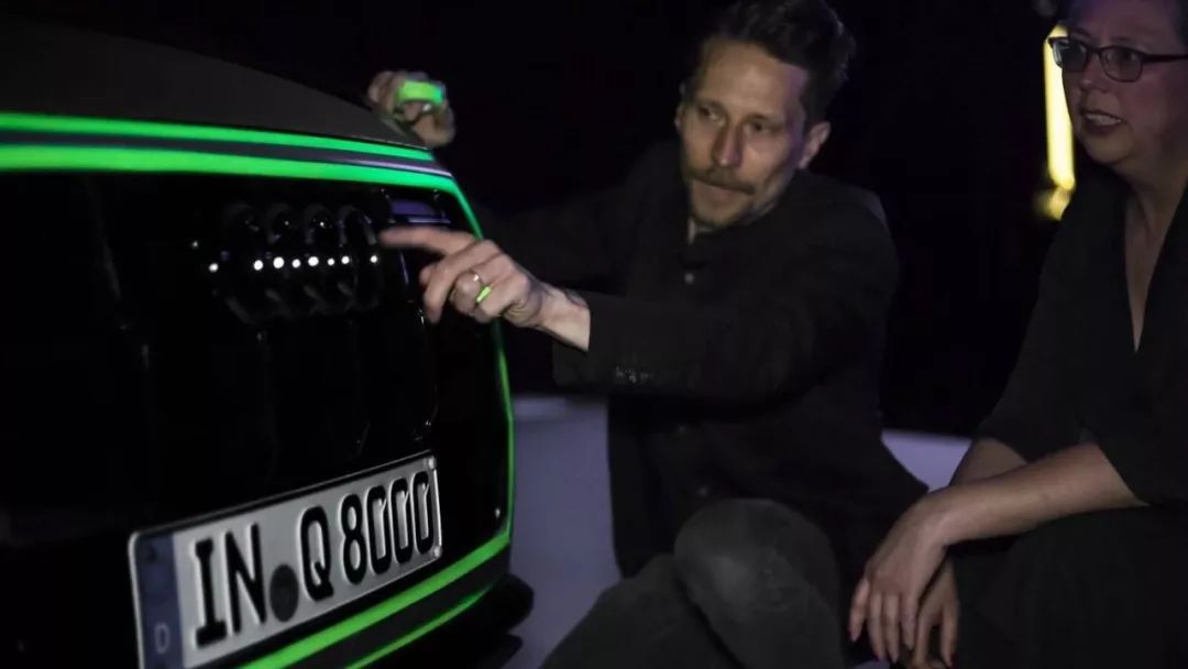 奥迪Q8开创设计预热新方法——用荧光胶带贴车
