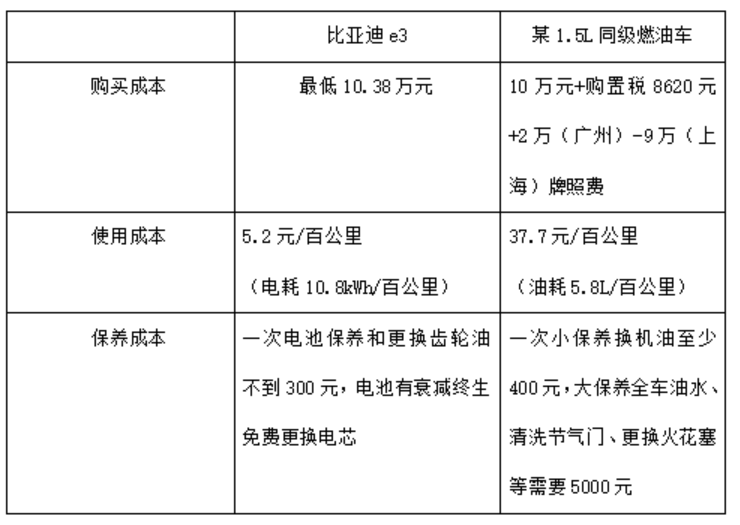 如果每天就开车上下班,e3作为家庭的第二辆车,无论是购车、使用和保养成本,都比传统燃油车便宜。