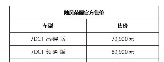 11月22日,陆风汽车旗下全新定位A+级的SUV——陆风荣曜于广州车展正式上市。新车搭载了当下同级车最领先的 "1.5GTDI+7DCT"黄金动力组合,共3款自动挡车型可选。配合5个外观颜色、2个内饰风格,能满足更广泛年龄段的用户需求。其官方指导售价7.99万元-9.99万元,这个价格甚至已经直接杀入了国产主流A0级SUV自动挡车型的售价区间,形成错位竞争的价值优势,展现了陆风荣曜的诚意。
