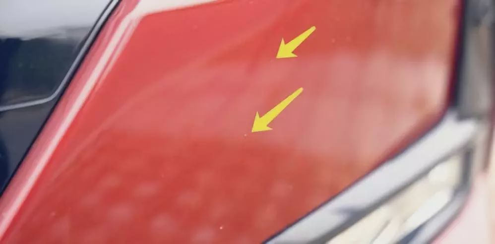比如我们这位网友的车,才开了几个月,车头已经有很多不同深浅的小坑出现(下图)。