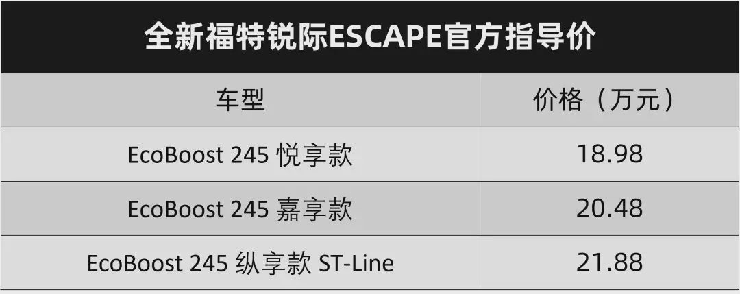 作为长安福特的全新紧凑型SUV,锐际将跟翼虎同堂销售,从目前的价格来看,这车卖得要比翼虎更便宜一些。当然,按照长安福特的计划,锐际后期还会有1.5T三缸版本推出,而现在搭载的2.0T发动机,最大马力达到了248匹,最大扭矩为393牛·米,匹配8AT变速箱。