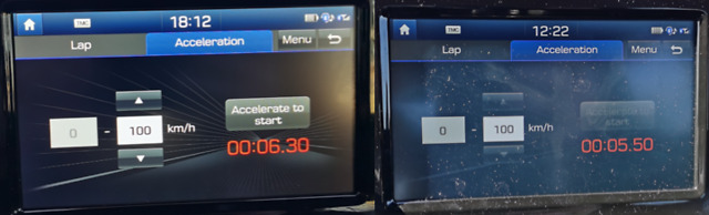 从特性来看这是一台标准的大涡轮增压机,低负荷下全油门的迟滞非常长。全油门后2秒泵轮才逐渐产生压力,逐渐达到最大有效缸内压力,输出扭矩也慢慢变好,i30N终于活泛起来。按照仪表显示,韩国启洋精工Keyyang提供的涡轮最大压力值约为1.1bar, Overboost工况最长大约可以持续10秒左右,此时增压值表上方出现一个涡轮图标。考虑到这台发动机的设计年代久远,很多机械结构并没有完全针对i30N这种车型进行开发,如此表现还是挺激进的。