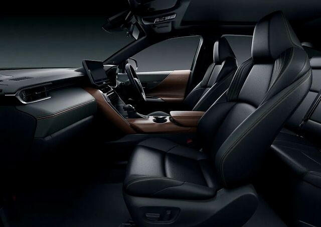 内饰更不用说,即便只是通过照片都能明显看出新Harrier改善了RAV4内饰上的几乎所有缺点:Console区域全皮质包裹,挡杆中置,全液晶空调控制面板+全触控,两边也用皮质点缀,RAV4槽点最大的前IP和车门也换成了大面积皮质覆盖。此外,新Harrier大量使用了隔音和减震材质保证高级感,如双层玻璃等。