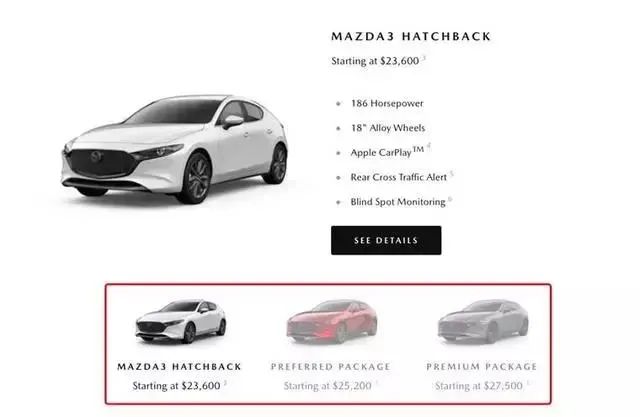 再者,根据马自达美国官网的数据显示,全新马自达3两厢版的价格高过三厢版。虽然不引进马自达3两厢版对那些喜欢两厢版的朋友不算公平,但这也是在情理之中,毕竟没有一个企业想做亏本生意。