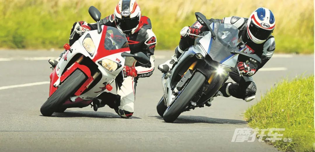 再接下来,就是骑手们最熟悉的YZF-R1了。1998年,最早一代的YZF-R1闪亮登场,胸膛中奔腾着气焰凶悍的每缸5气门、排量998mL的并列四缸发动机。当时,高达112kW的最大功率,仅为177kg的净质量和1395mm的超短轴距,再配上高规格的车架,让YZF-R1成为世界上跑得最快、质量最轻、操控最灵活的超级摩托车!