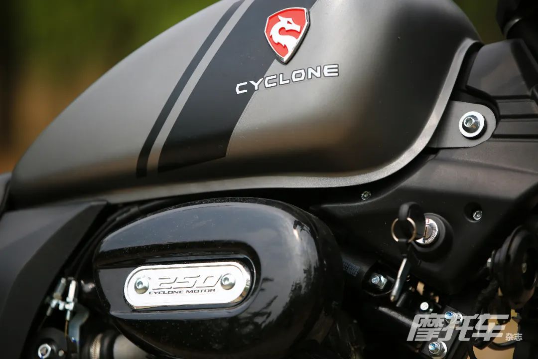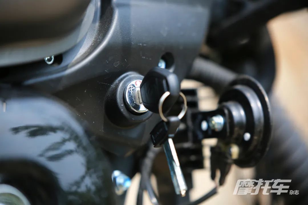 钥匙门被设计在了车头侧面,不过龙头锁是单独一个钥匙孔,这样的设计虽然有些不实用,但对于一款复古巡航车来说,多一次拧钥匙的动作仪式感十足,也算是一种复古的呈现吧。