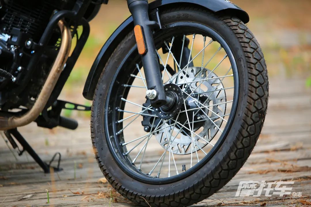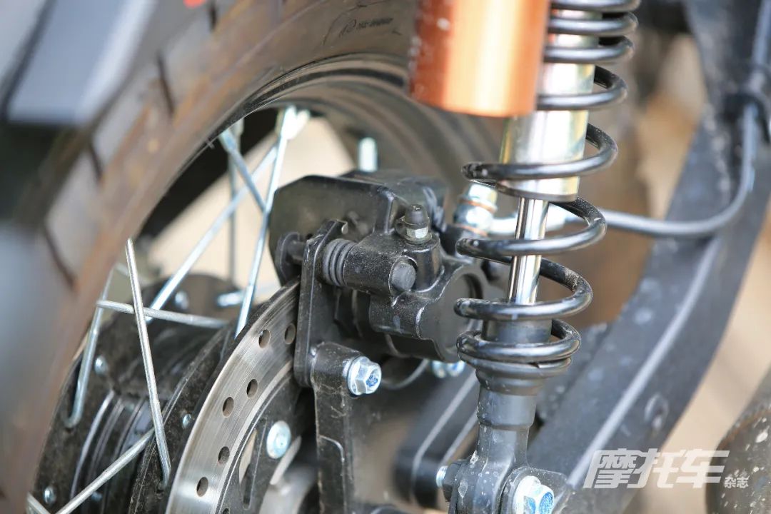 动力方面,这款单缸发动机的调校还是偏向中低转速输出,由于这款车的仪表没有配备转速表,所以只能感觉到在中低转速的输出比较强劲,并且在低转速下没有明显的脱档现象。这种强劲的低扭表现一方面是靠发动机输出,另一方面,后轮44齿的牙盘设计也在一定程度增加了整车的中低转速表现。