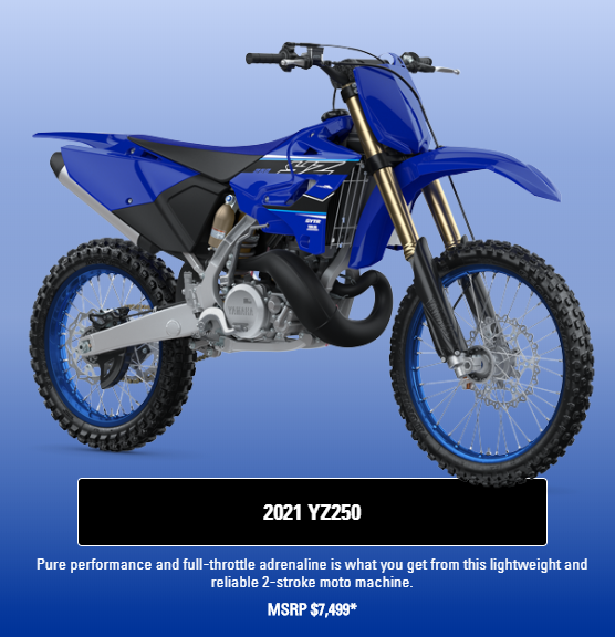 2021款YZ250F售价为8299美元,仅需加200美元就可以获得YZ250F Monster Energy Yamaha Racing Edition赛事版,它不会使你变得更快,但会让你更帅。