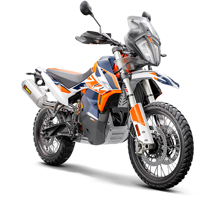 KTM 790 ADVENTURE R RALLY作为最接近达喀尔拉力赛战车的民用车型,在KTM 790 ADVENTURE R基础上,升级了最接近赛事级别的顶级WP PROCOMPONENTS悬挂组件,增加了提升骑行舒适感的重要附加组件,集硬核拉力特性与长途旅行能力于一身,是KTM系列中当之无愧的最强ADVENTURE。车身配色使用了此前从未在民用车上用过的KTM厂队专属蓝色,致敬了厂队的冠军荣耀,同时彰显了这台限量拉力车的尊贵地位。