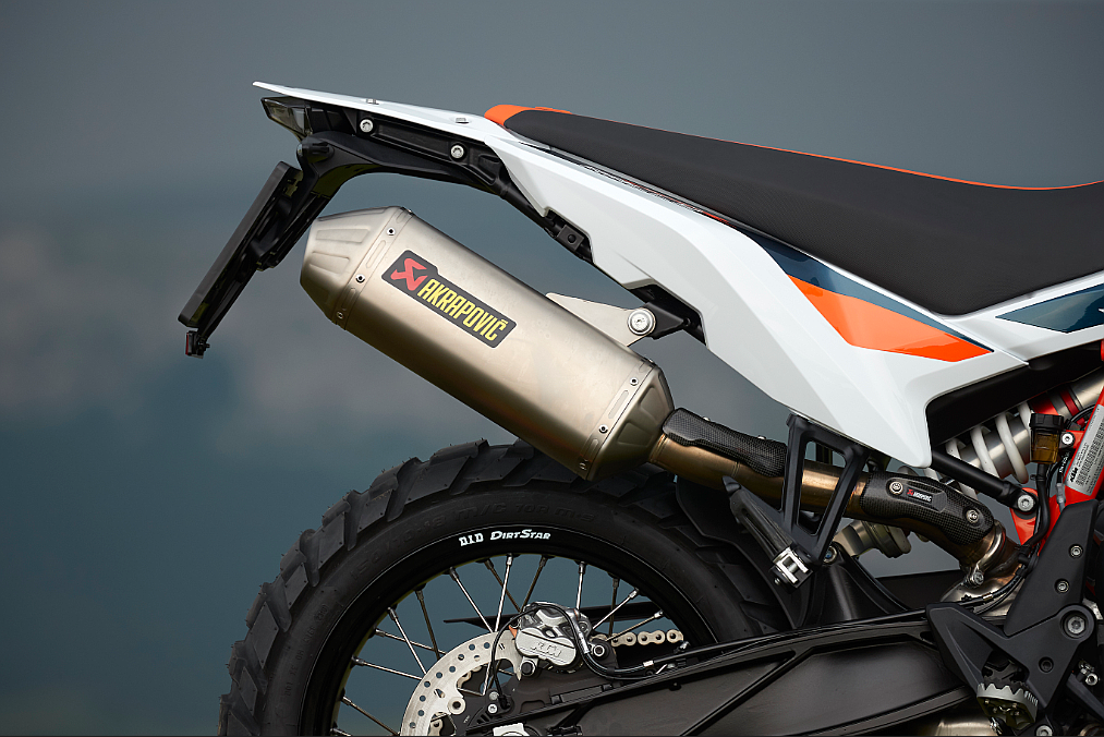 这款车型配备AKRAPOVIC“Slip-on Line”钛制消音器,可以令整车更具拉力外观和质感。通过使用优质钛材料,与标准消音器相比,这款消音器的质量可减轻大约 30-40%,实现极致的轻量化,同时拥有令无数车手着迷的声浪,将性能武装到听觉。