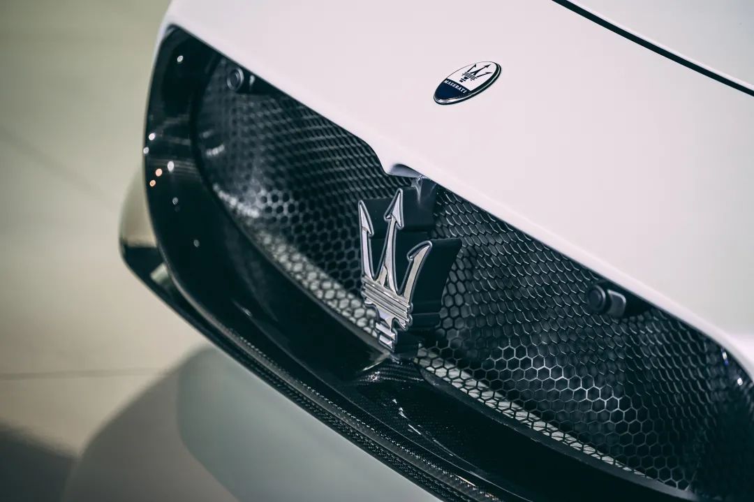 和很多中置超跑一样,MC20也采用了玻璃后盖,并且为了提升设计感,还用百叶窗拼出了海神三叉戟的造型。