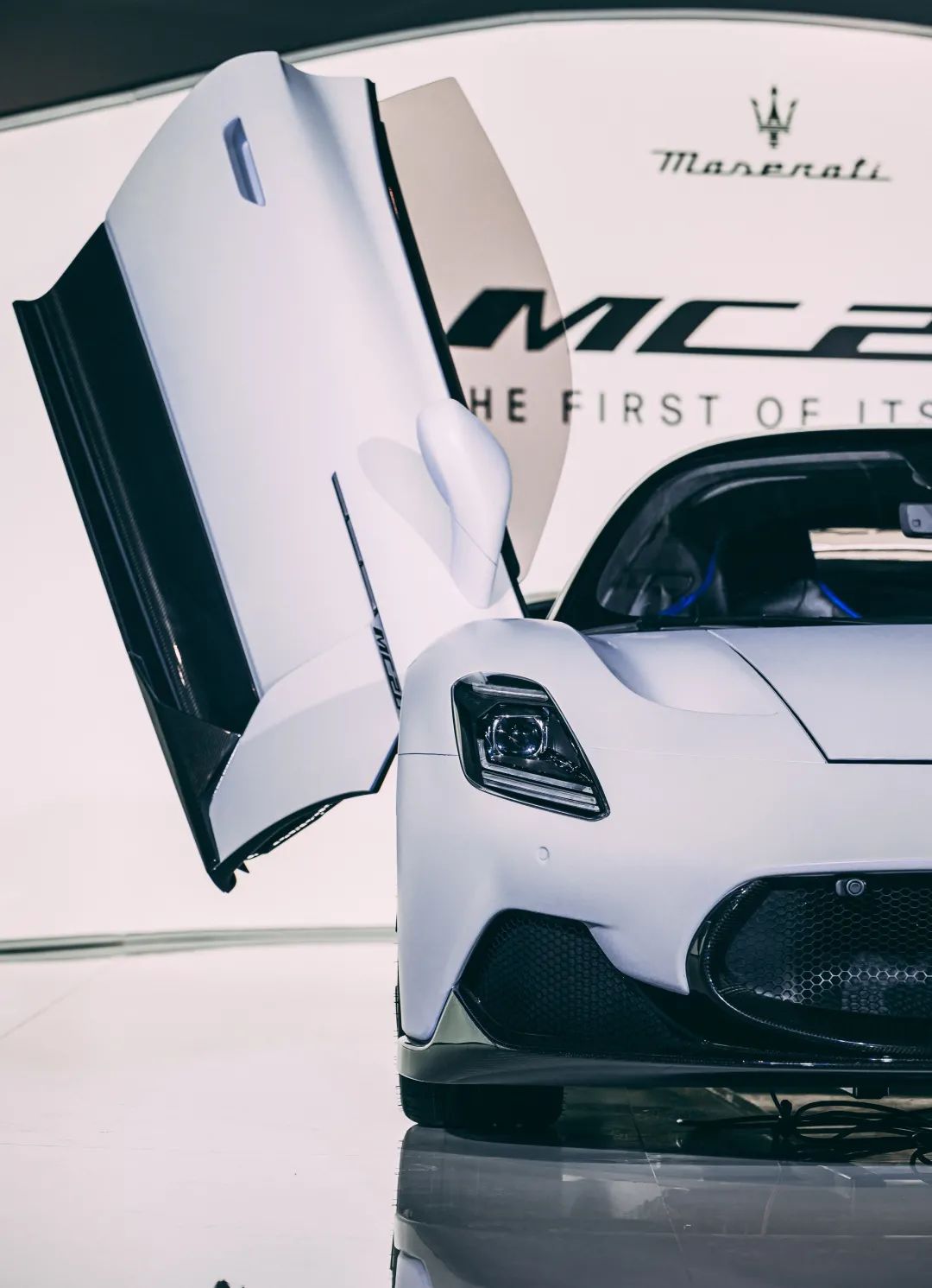 打开车门,MC20的感觉就不再那么低调了,蝴蝶门的开启方式可以说是绝对的抢眼与张扬,笔者作为一个之前在现实中只看过玛莎拉蒂四门轿车和GT的人来说,实际MC20开门的样子,确确实实有被震撼到。