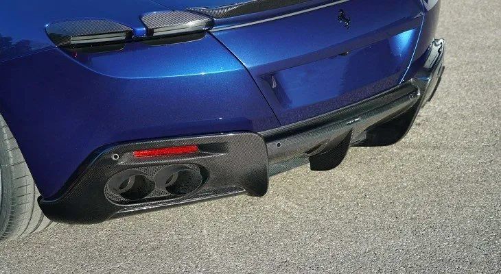 对于超跑高速行驶稳定性很重要的后下分流器,Novitec也有开发更立体的碳纤维部品,且车主还可视需求额外加装垂直翼板,让车底整流效果更好。