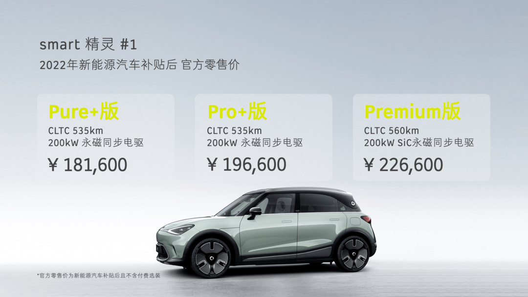 1、售18.16-22.66万元 smart精灵#1上市