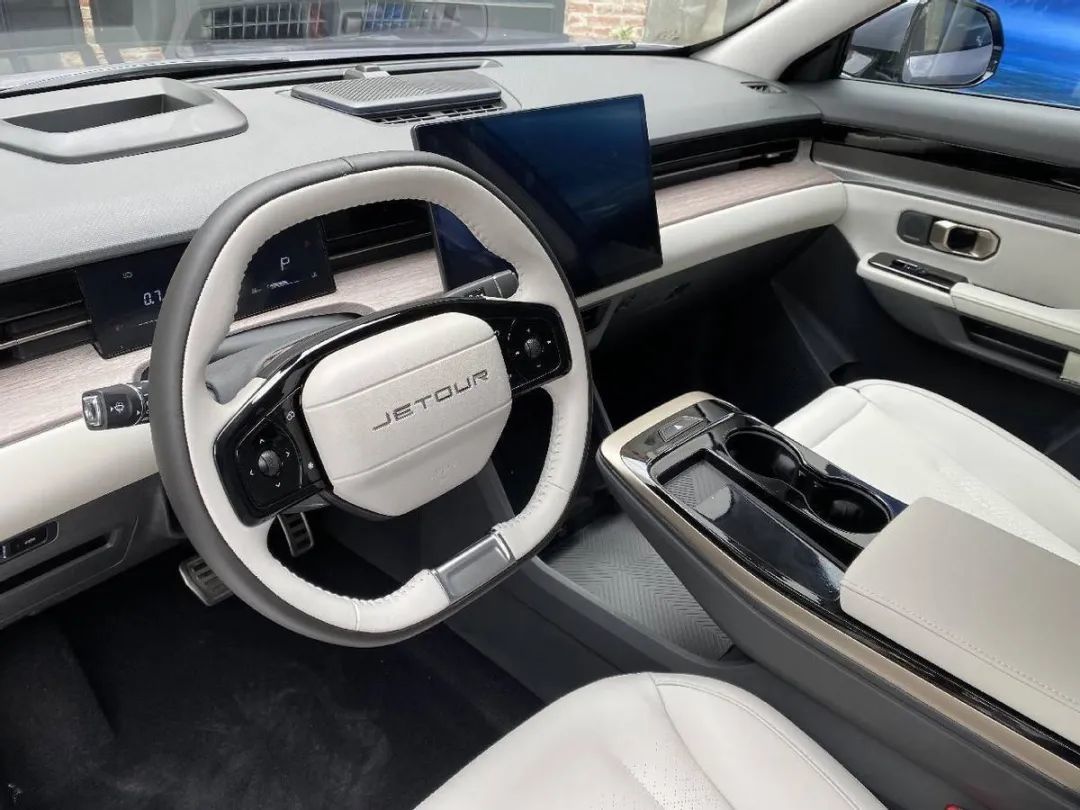 内饰各种功能键全部集成在中间的15.6英寸窄框中控大屏之内。并且通过小尺寸数字仪表和HUD抬头显示来代替传统的仪表显示。此外捷途大圣还配备了“女王副驾”腿托和脚托的功能以及主副驾头枕音响系统。