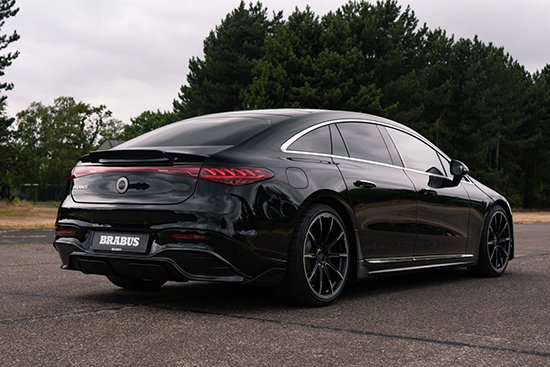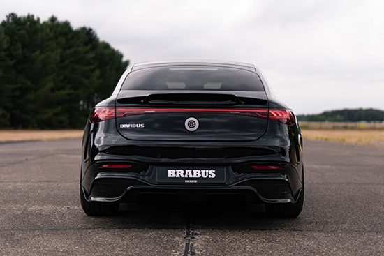 侧面依旧采用标志性的溜背造型,搭配宽体设计的碳纤维侧裙以及22英寸轮圈,动感十足。尾部配备了碳纤维后扰流板,同时贯穿式尾灯还采用了熏黑处理,彰显运动化定位。后包围和扩散器均进行了重新设计,并且升级为碳纤维材质,以减小尾部的升力。经过一系列空气动力学优化,与普通版车型相比,BRABUS EQS 450+车型的风阻系数Cd值降低了7.2%。