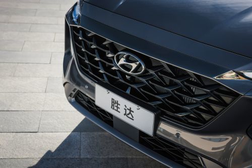从曝光的官图中可以看到,新车沿用了第四代胜达的上下双格栅设计,但增大了双格栅的尺寸面积。其中,上方六边形格栅造型由此前的网状格纹调整为箭羽式几何造型;下方梯形格栅由倒梯形调整为正梯形,并加以银色装饰外框,视觉效果更出众。