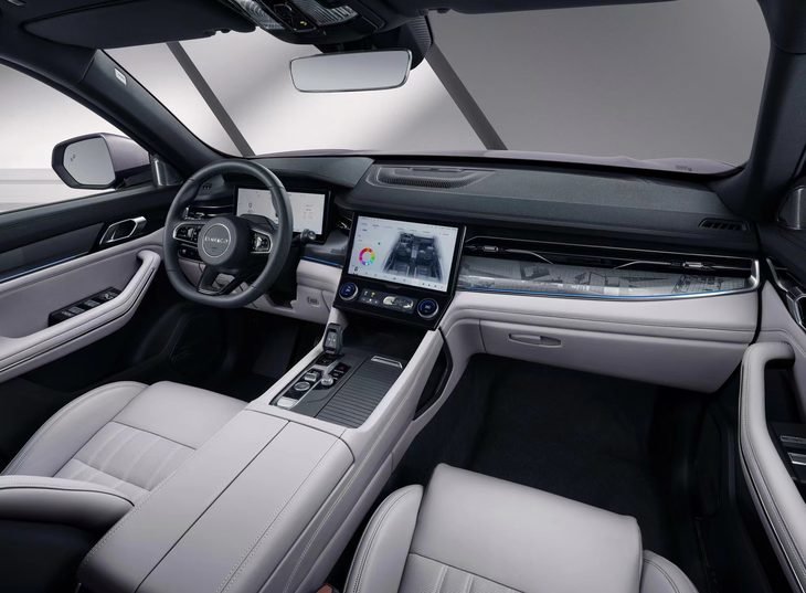 车侧加入了更多优雅的线条,整体造型看起来更加时尚。尾部延续了现款在售的领克09 PHEV车型的设计,配备了狭长的贯穿式尾灯。车身尺寸方面,新车的长宽高分别为5042/1977/1780mm,轴距为2984mm,整备质量为2470kg。